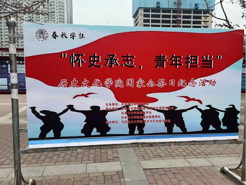 本次活动是公司多院联合、公司多社团联合,紧抓专业特色打造校园文化品牌的一次成功尝试。未来,公司将继续通过活动形式设计与调性把控,加大院系联合力度,呈现更多有历史重量、有专业特色、有青春朝气的校园文化活动。2024年是南京大屠杀死难者国家公祭日十周年,让我们谨以此次“怀史承志”系列活动缅怀先烈,勿忘耻辱,警钟长鸣,怀古承志,砥砺前行。