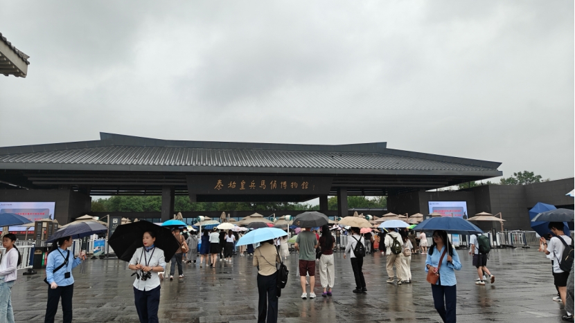 6月18日上午,同学们来到秦始皇帝陵博物院参观。在讲解中,同学们探寻秦始皇陵的奥秘。从陵址选址的风水考量,到建造动员的庞大人力,再到兵马俑制作工艺,皆藏着大秦密码。凝视兵马俑坑,陶俑身着战袍或铠甲,发型面容各异却肃穆威武。讲解员介绍,陶俑模塑结合、彩绘装饰,千人千面的背后,是秦代工匠对写实艺术的极致追求,也映射秦军严密编制与强大战力。同学们仿佛望见千年前秦军出征的磅礴气势,真切触摸到大一统王朝的脉搏。