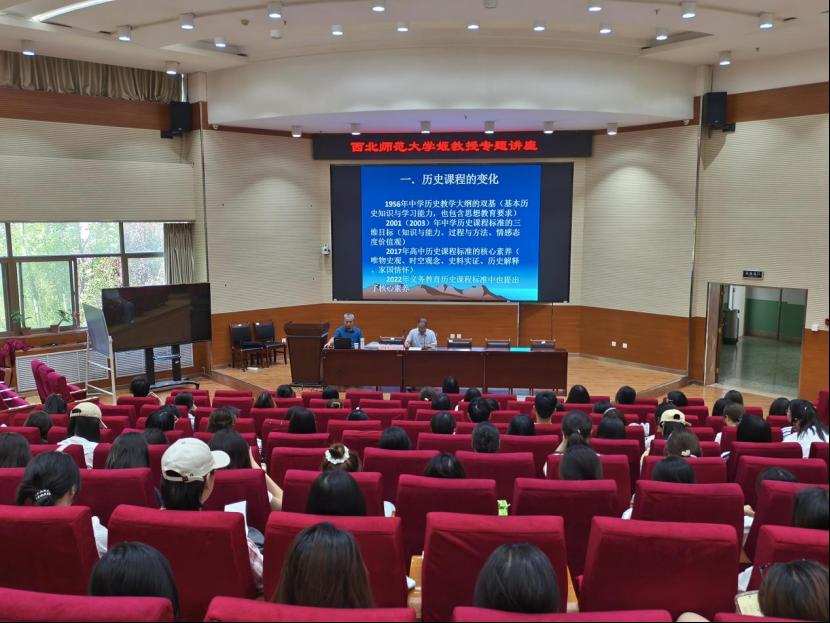 讲座伊始,姬教授便以其深厚的学术底蕴和丰富的教学经验,深入浅出地剖析了历史课程在不同时代背景下的演变历程。他从新中国成立初期历史课程的初步构建,到改革开放后课程内容的不断丰富与完善,再到如今新时代对历史课程提出的新要求,各个阶段的特点与变化都讲解得十分透彻。姬教授指出,历史课程的变化始终与时代发展紧密相连,随着社会的进步和教育理念的更新,历史课程在内容选择、教学方法以及育人目标上都发生了显著的改变。