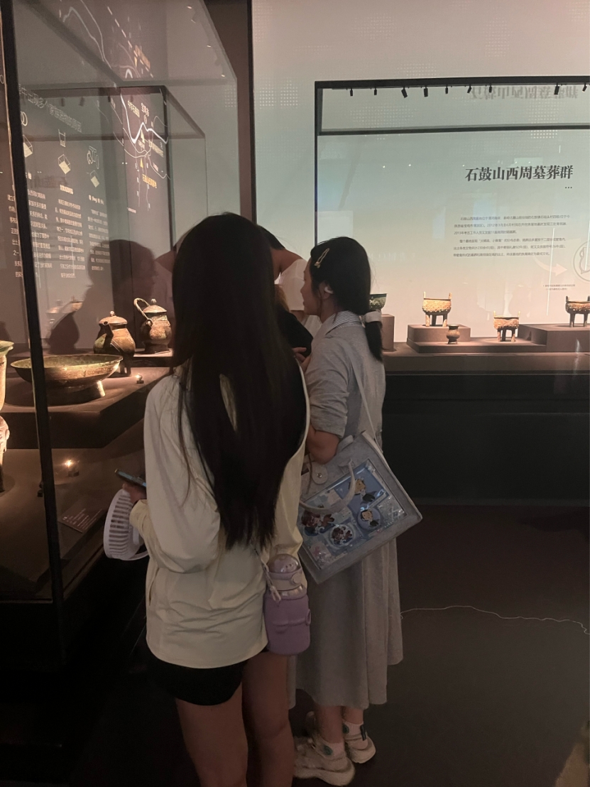 在宝鸡青铜器博物院,同学们兴趣盎然地观察着造型各异、年代久远的青铜器,神秘的兽面纹,似在诉说与神灵沟通的古老仪式;长篇铭文记载诸侯册封、战争功勋。同学们细察器物纹理的细微起伏、铭文的笔画走势,从复杂范铸工艺,到祭祀、宴飨功能承载,一步步解码青铜文明,感悟古人技术与精神的双重智慧。
