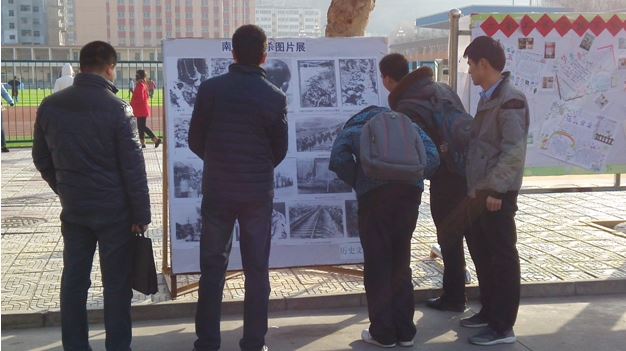 首先,在旧图书馆前展出了系列南京大屠杀图片,用图片的方式让同学们直观的感受那段惨不忍睹的历史。