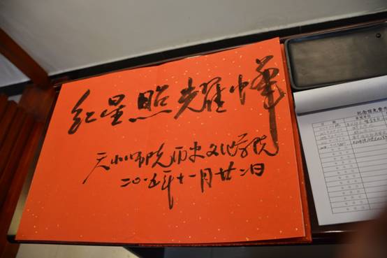在武山县红军长征强渡渭河纪念馆,教师认真参观了1935年9月——1936年10月,红军一、二、四方面军三次途径武山,建立革命政权的文物图像,详细了解了陇东南早期革命历史事迹,深刻感悟到新中国的建立来之不易,值得倍加珍惜。公司王宏谋副教授代表公司全体教师为纪念馆挥毫留墨,他笔力劲挺、力透纸背的书法迎来一阵阵掌声。通过参观,大家接受了一次深刻的革命传统教育,进一步强化了党员意识,加强了党性锻炼。
