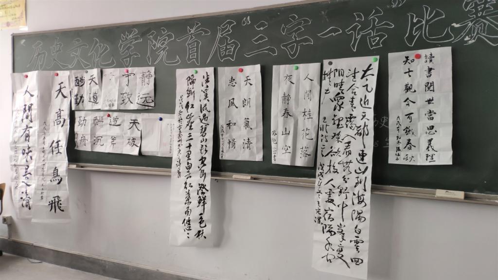 毛笔字比赛结束后接着举行了粉笔字和普通话的比赛。参赛选手自信、大方,在讲台上尽情展示自我。