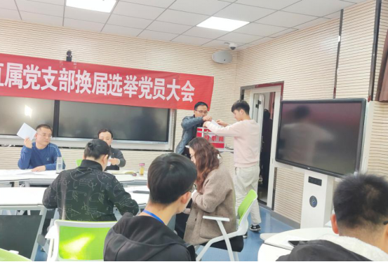 随后大会表决通过了《bevictor伟德直属党支部换届选举办法(草案)》,通过了大会监票人、计票人名单,宣读了上级党委关于候选人的批复,对参选的九位候选人一一做了情况介绍。采用无记名差额投票的方式进行选举。有投票权正式党员应到28人,实际到会25人,达到五分之四,符合换届选举要求。现场发出选票25张,收回25张,有效票25张。最终从9名候选人中选举7人为新一届党直属支部委员,随后在2号教学楼502室召开了新一届直属党支部委员会第一次会议,选举了委员会书记和副书记,并对党支部委员进行了分工。