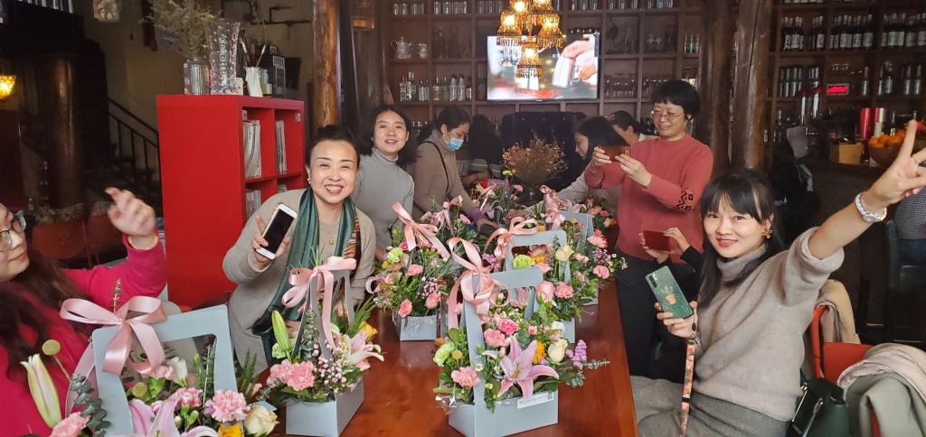 据公司《庆祝2021年“三八”国际劳动妇女节》文件通知,2021年3月11日下午,bevictor伟德举办了“庆三八 展风采 幸福与健康同行”主题活动,全院女教工到天水市秦州区解放路24号五分咖啡店学习插花艺术。