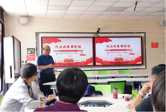 根据天师院宣字【2021】11号《关于组织开展“美好生活·民法典相伴”主题宣传活动的通知》精神,为促使公司师生党员更加深入学习贯彻习近平法治思想,全面贯彻落实习近平总书记2020年5月29日在中央政治局第二十次集体学习时的重要讲话精神,切实抓好民法典学习宣传教育工作,6月3日下午2:30,公司全体师生党员在二号教学楼504教室开展“美好生活·民法典相伴”主题宣讲活动,邀请公司党委常委、统战部崔亚军部长为公司全体党员师生作专题宣讲报告。报告会由公司直属党支部书记主持。