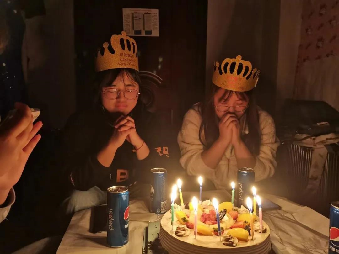 2021级文博一班和旭娥同学说:“很幸运在师院和室友一起度过了十八岁生日,更幸运的是和室友的生日撞在了一块,我想这一定是特殊的缘分。虽和舍友们相识不久但被温暖的舍友们感动到,很平凡但是美好。除此之外,希望疫情可以快快过去,我们的城市快点好起来。”