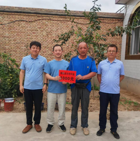 8月16日,公司党总支书记尹志宏、副经理赵世明,班主任王宏谋一行三人,前往天水市甘谷县新兴镇渭水峪村慰问了21级历史班的一名家庭贫困生。该生家中人口多,奶奶有重病,家中还有一个未成年的弟弟正在读书,家里经济来源主要依靠父母亲务农获得,负担较重。