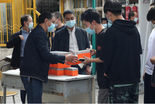 10月1日下午,公司领导班子带领辅导员、班主任到芝园、若谷、菁英、华英等公寓,为同学们送去国庆祝福——每人一份精美的“爱里”蛋糕,对全院师生进行了慰问,与在校同学共度国庆佳节。