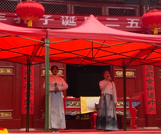 9月28日,农历癸卯年八月十四日,高山景仰,鸾凤和鸣;万世师表,千秋共荣。龙城天水,秋高气爽,甘肃省天水市秦州区千年文庙彩旗飘飘,古乐声声。2023(癸卯)年纪念孔子诞辰2574周年祭祀大典隆重举行。2023级全体新生及部分教师参加了此次活动,21级历史1班罗佑如同学和贾喜燕同学表演了诗朗诵等节目。
