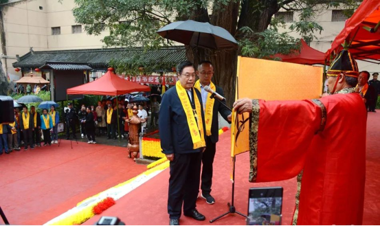 上午10时整,祭祀官缓缓入场,全场嘉宾整理衣冠,庄严肃立。在悠扬的乐鼓声中,市委常委、秦州区委书记王东红宣布祭孔典礼仪式开始。击鼓12咚,鸣钟9响,代表中华民族最高礼仪,表达了对至圣先师孔子的敬仰尊崇。市人大常委会一级巡视员、天水孔子文化研究院经理安志宏主持祭祀典礼,甘肃省政协原副主席张津梁恭读了祭文。