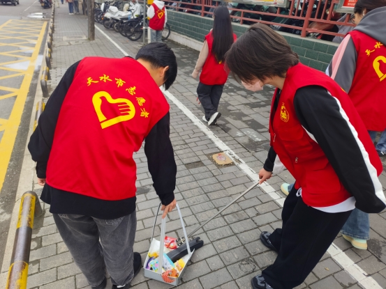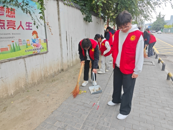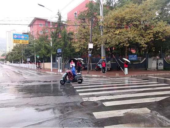 天气多变,但同学们始终热情坚守在自己的岗位上,用实际行动诠释着老员工志愿者的责任与担当,充分发扬了不怕脏、不怕累、齐心协力的志愿者精神。他们身着统一的志愿者服装,雨天时疏导交通,晴天时手持清扫工具,认真清扫街道落叶,捡拾垃圾,不放过任何一个角落。同学们分工明确,配合默契。