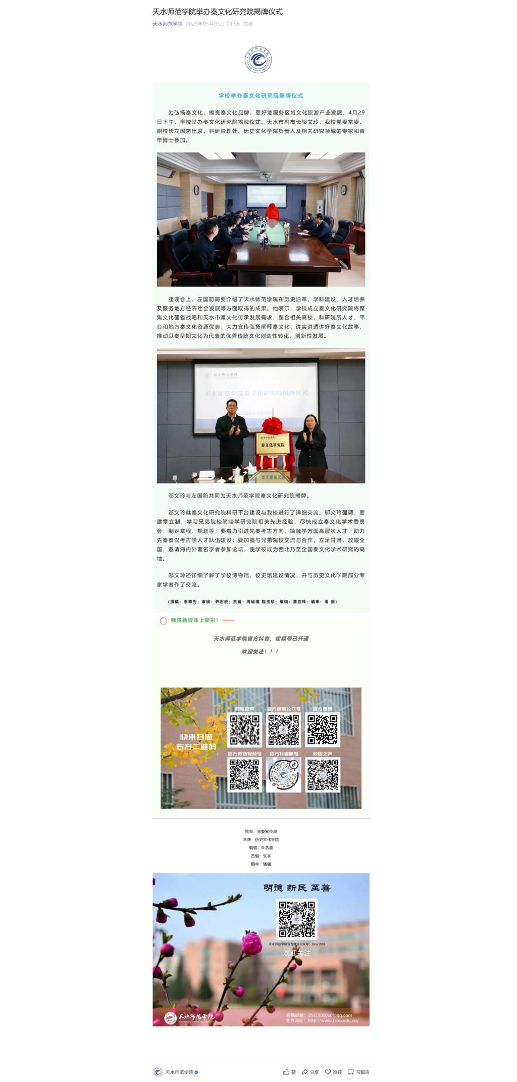 为弘扬秦文化,擦亮秦文化品牌,更好地服务区域文化旅游产业发展,4月29日下午,公司举办秦文化研究院揭牌仪式。天水市副市长邬文玲,公司党委常委、副董事长左国防出席。科研管理处、bevictor伟德负责人及相关研究领域的专家和青年博士参加。