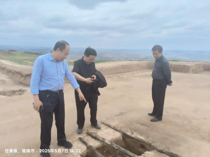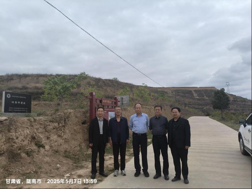 5月7日,调研组在礼县文物局局长独小川陪同下,先后参观考察四角坪遗址考古挖掘现场、圆顶山遗址、大堡子山秦公陵园及西山遗址。独小川详细介绍了近年来礼县在秦文化遗址考古发掘、文物保护及文旅融合发展方面取得的成果。通过实地踏勘、听取讲解,调研组一行对秦人早期都邑的历史地位及遗址保护现状等有了更直观的认识。