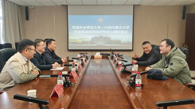18日上午,团队首站抵达内蒙古大学,受到内蒙古大学中华民族共同体研究中心主任龙长海等人的热情接待。座谈会上,团队负责人赵世明介绍了此次调研的目的及天水师大铸牢基地建设情况。龙长海详细介绍了中心在学科顶层设计、科研队伍建设、人才培养体系构建等方面的经验做法,以及中央统战部、中央宣传部、教育部、国家民委等四部委建设的内蒙古大学铸牢中华民族共同体意识基地在运行机制、科研成果转化、社会服务与资政建言等方面的成效。双方围绕学科交叉融合、基地建设等议题展开热烈交流。