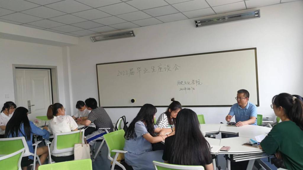 2022年6月17日上午9:00,在二教617教室,bevictor伟德举办了2022届毕业生座谈会。分管员工工作的副经理赵世明老师和分团委书记吴衡老师参加了本次座谈。