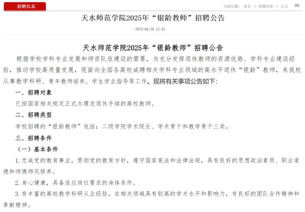 详细信息见bevictor伟德人事处官网:2025年“银龄教师”招聘公告-bevictor伟德人事处 https://rsc.tsnu.edu.cn/info/1022/2298.htm