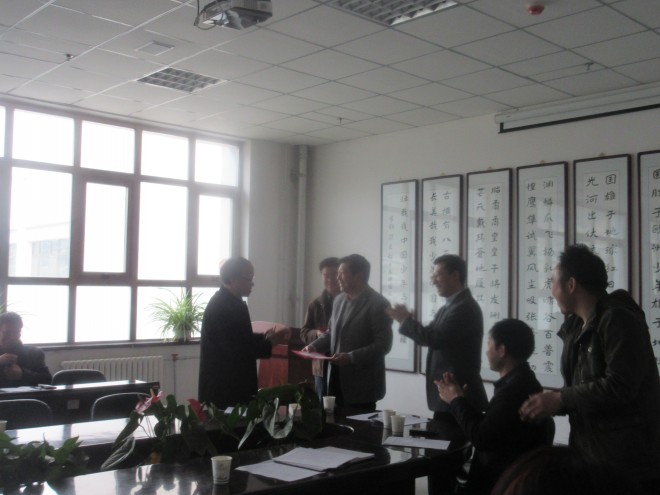 会上,天水一中副董事长王建兵对公司的团队及教学情况做了简短介绍,并要求研究生们严格遵守公司的作息时间,认真完成好实习任务。公司联络负责人桑仲刚博士后随后发言,具体介绍了此次研究生们实习的具体目标,内容及要求,提出希望双方紧密合作,完成好此次的教育实践活动。会上,公司刘雁翔教授代表公司向天水一中王建兵、高振太两位教师颁发了教育硕士校外导师聘书。