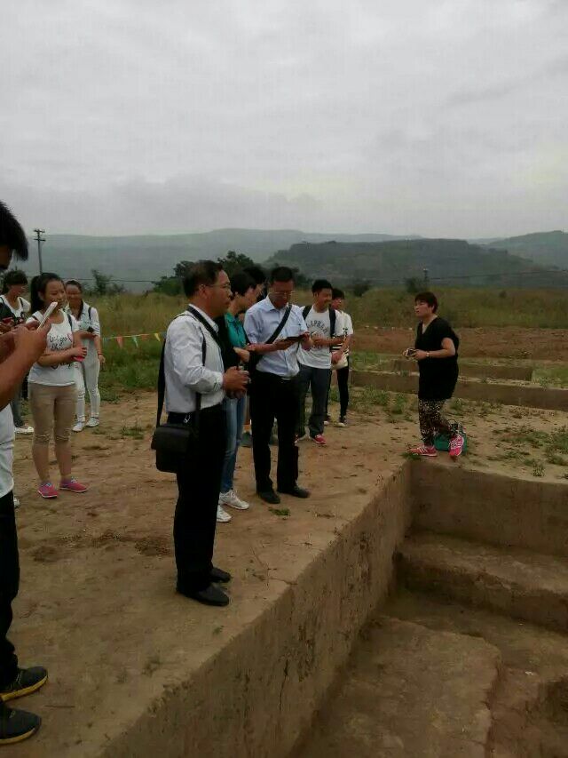 2015年7月2日,公司领导杨小敏、陈于柱带领文物与博物馆学1班全体25名员工赴礼县大堡子山考古遗址现场进行“田野考古”课程见习工作。任课教师苏海洋副教授结合遗址实际对“田野考古”课程的重点与难点进行了现场讲授,考古队负责人与陕西师范大学裴建陇老师结合多年的现场考古经验,详细讲解了大堡子山遗址的墓葬、葬制、随葬物品及具体进展情况。文物与博物馆学1班员工现场观摩了部分遗址的挖掘、清理过程,并实际操作了洛阳铲等考古工具。